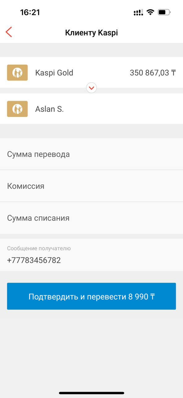 Нажмите кнопку «Подтвердить и перевести 8 990 ₸»